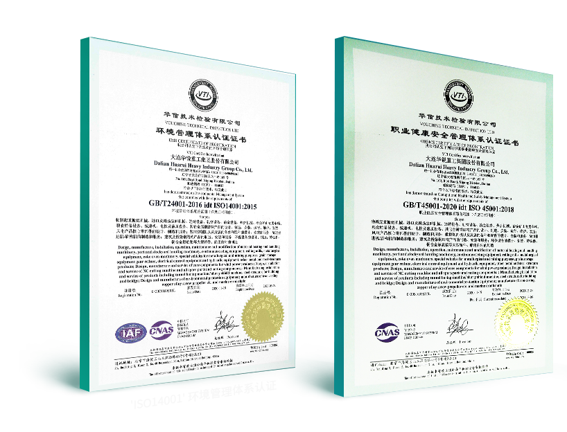大連重工在確保公司產(chǎn)品、活動和服務(wù)符合國際職業(yè)健康安全和環(huán)境的政策、法律、法規(guī)及其他的要求,公司順利通過了'ISO45001職業(yè)健康安全管理體系認(rèn)證和 'ISO14001' 環(huán)境管理體系認(rèn)證,持續(xù)保持并改進(jìn)。